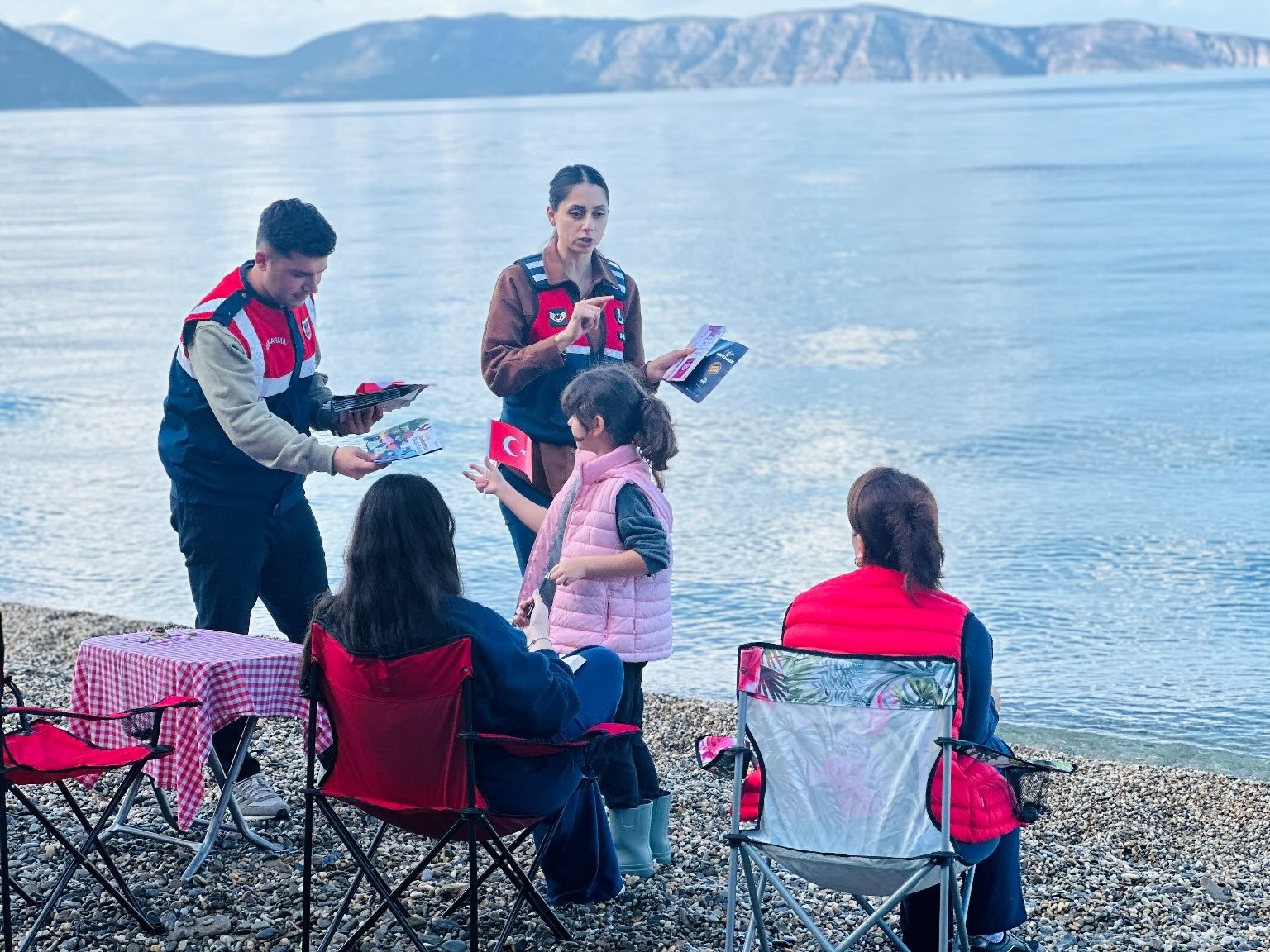 Aydın İl Jandarma Komutanlığı Aile İçi Şiddetle Mücadele ve Çocuk Şube Müdürlüğü koordinesinde eğitim ve bilgilendirme çalışmaları aralıksız sürüyor. Bu çerçevede Dilek Yarımadası Milli Park’ında sahaya inen jandarma ekipleri, Milli Park’ı ziyarete gelen vatandaşlara “Kadına El Kalkamaz ve KADES” uygulaması kapsamında tanıtım ve bilgilendirme çalışması gerçekleştirdi. Kadına yönelik şiddete karşı farkındalık oluşturan ekipler ayrıca çocuklara da Türk bayrağı ve Jandarma Çocuk dergisi hediye etti.