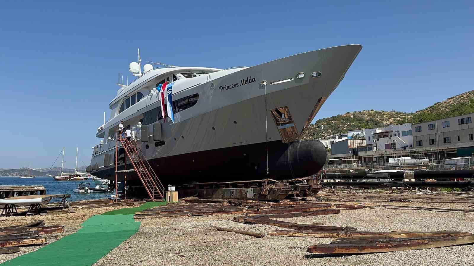 Bodrum’da üretilen milyon dolarlık, 42 metre uzunluğunda 8,5 metre genişliğindeki “Prenses Melda” isimli tekne, düzenlenen törenle suya indirildi.