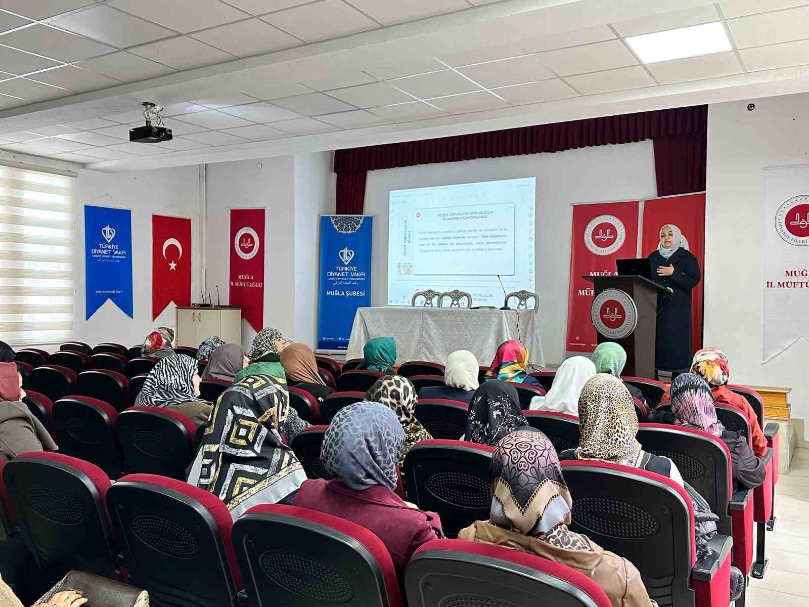 Muğla İl Müftülüğü Aile ve Dini Rehberlik Bürosu tarafından düzenlenen ’Değerleriyle Güçlü Ailem: Ailede Sorumluluk Bilinci’ konulu program, Müftülük Çok Amaçlı Salonu’nda kadınlara özel olarak gerçekleştirildi.