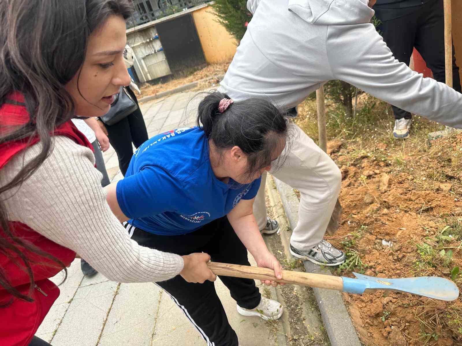 Özel gereksinimli bireylerin sosyalleşmesini sağlamak, ağaçları ve meyve sebze fideleri dikerken öğrencilerin birbiri ile yardımlaşmasını ve iş birliği yapmasını sağlamak, özel gereksinimli bireye çevre bilincini aşılamak amacı ile fidan dikimi gerçekleştirildi.