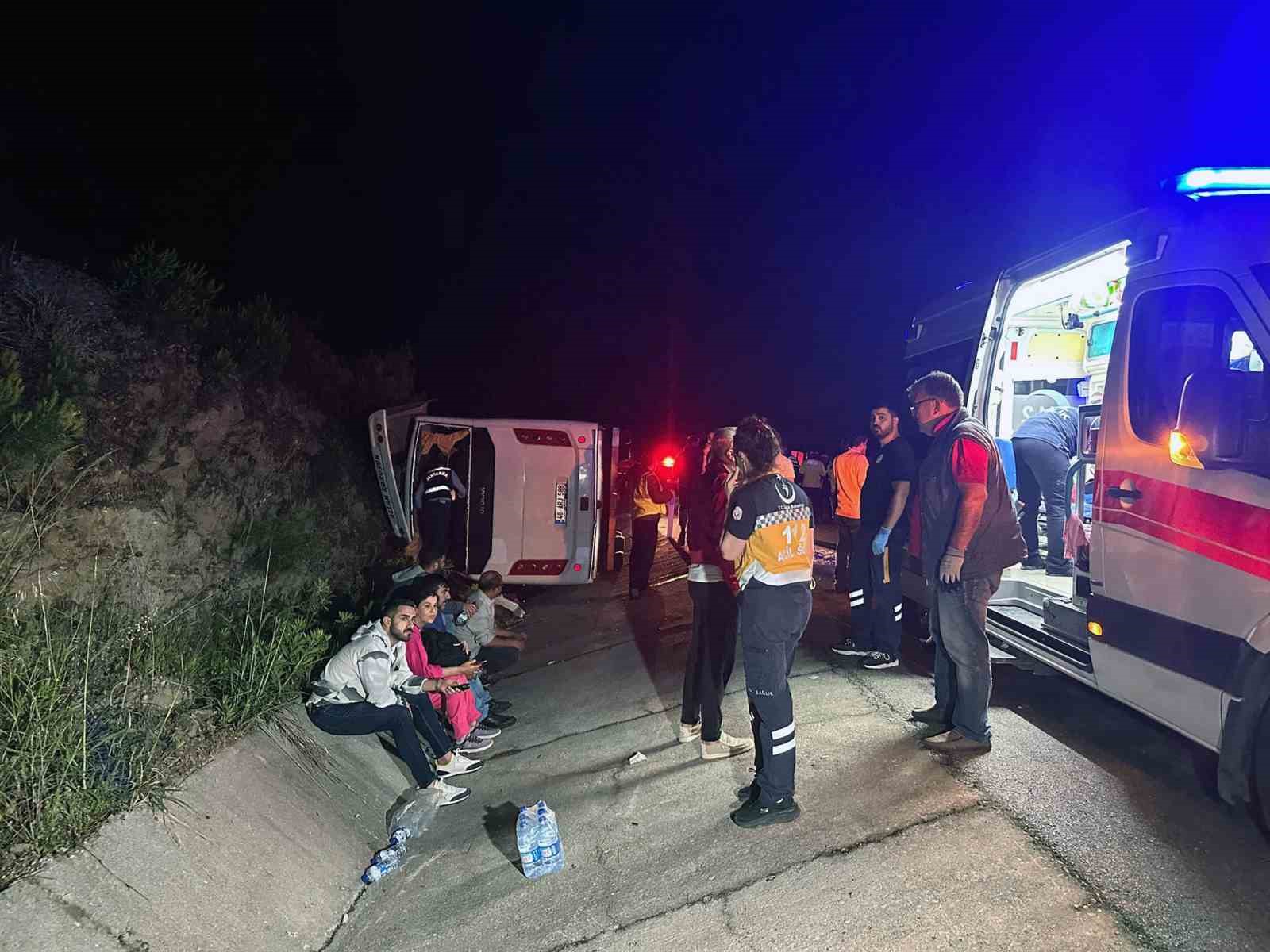 Antalya’ya geziye giden ve Ortaca ilçesine dönüş yapan içinde 22 öğrenci, 2 öğretmen ve bir sürücünün bulunduğu midibüs, yağışlı havanın etkisi ile Göcek rampalarında sürücünün direksiyon hâkimiyetini kaybetmesi sonucu şarampole uçtu.