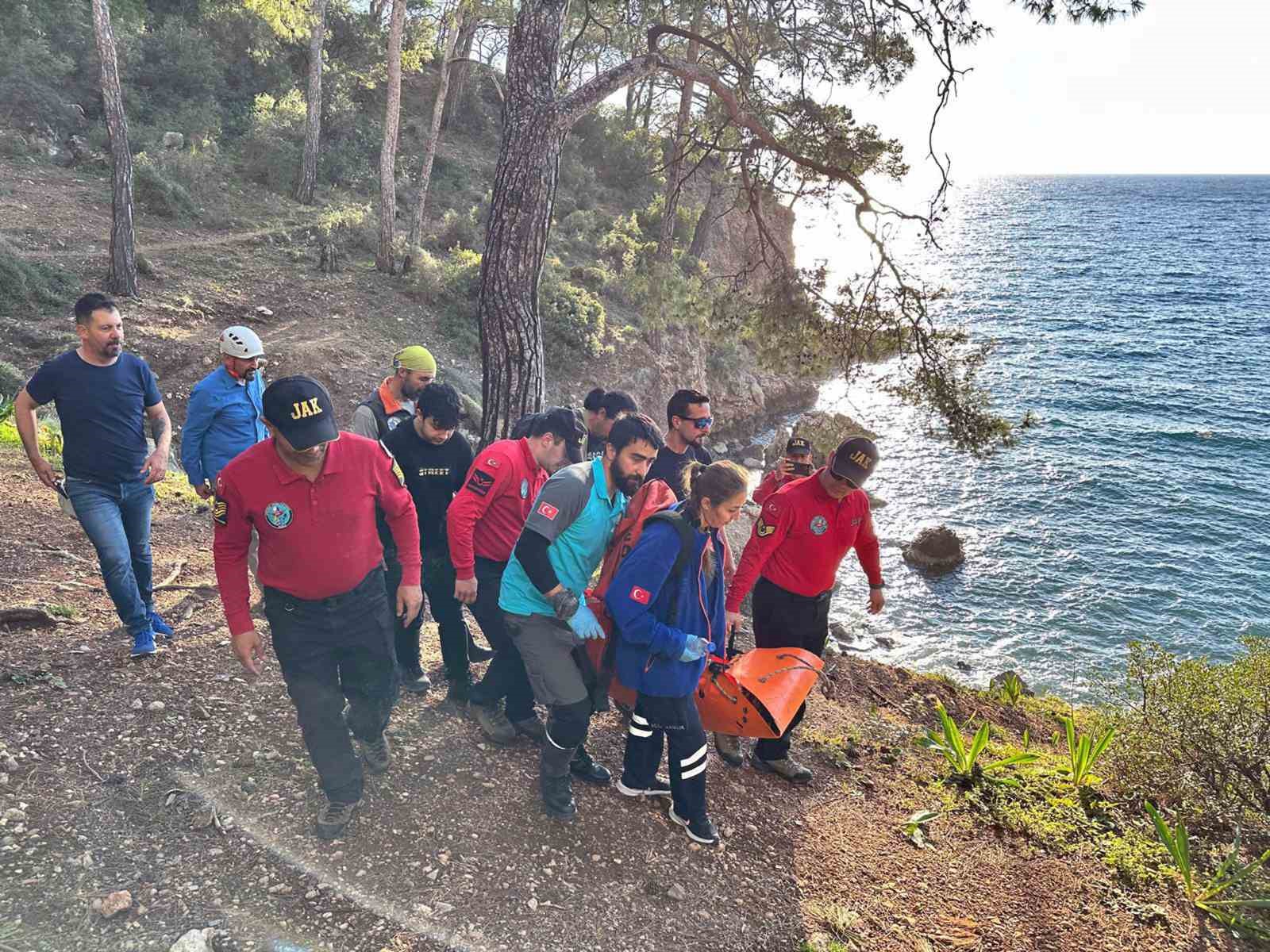 Muğla Fethiye ilçe Kabak koyunda yürüyüş yaparken ayak bileğini büken vatandaş için Jandarma JAK, UMKE, AFAD ekipleri seferber oldu.