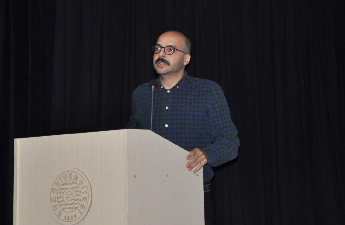 EÜ Eğitim Fakültesi tarafından “Atatürk- Cumhuriyet- Bilim” konulu konferans düzenlendi. Dokuz Eylül Üniversitesi Atatürk İlkeleri ve İnkılap Tarihi Enstitüsü Öğretim Üyesi Prof. Dr. Fevzi Çakmak’ın konuşmacı olarak yer aldığı konferansa; Eğitim Fakültesi Dekanı Prof. Dr. Osman Ferda Beytekin’in yanı sıra akademisyenler ve öğrenciler katıldı.