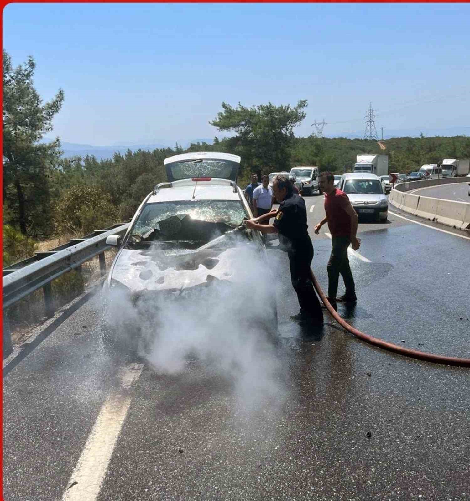 Muğla’da Sakartepe rampasında seyir halindeki otomobil motor bölümünde dumanların çıkması üzerine aracı terk etti.