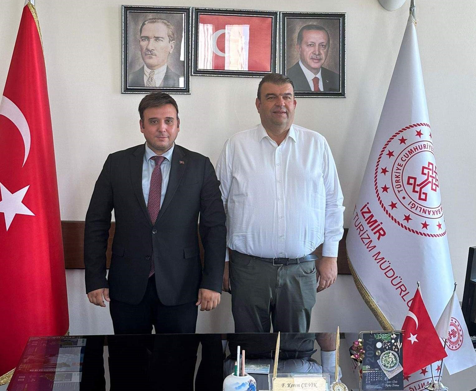 Seferihisar Belediye Başkanı İsmail Yetişkin göreve yeni başlayan İzmir İl Kültür Turizm Müdürü Fahrettin Kerem Çevik’i ziyaret etti.