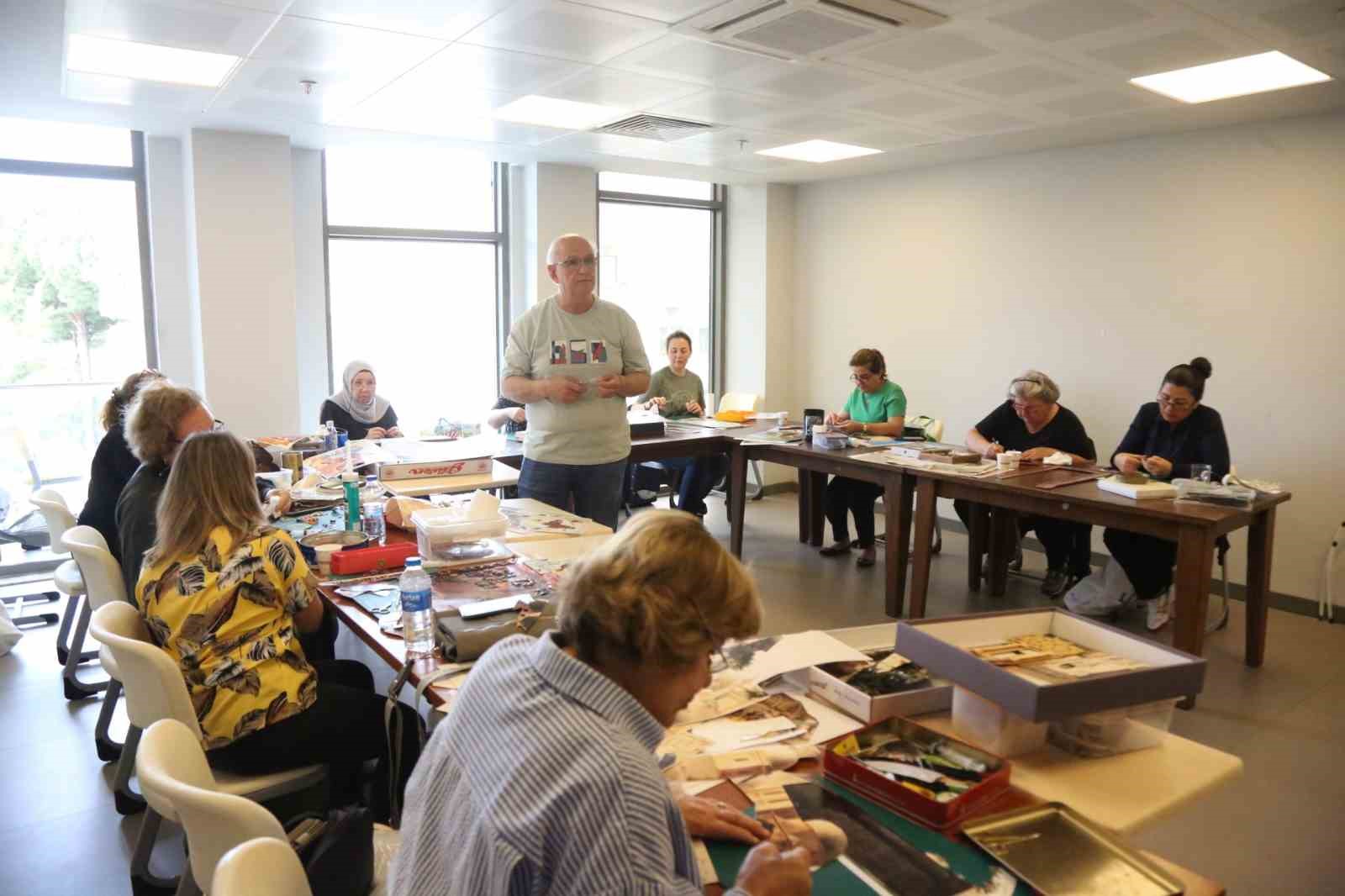Prof. Dr. İsmail Aka Kütüphanesi ve Sosyal Etkinlik Merkezi’nde düzenlenen kurslardan “Kat’ı” sanatı kursu kadınların yoğun katılımıyla devam ediyor. Kurslara katılarak üretmenin keyfini yaşadıklarını belirten kursiyerlere göre Kat’ı sanatı kursu terapi özelliği de taşıyor.