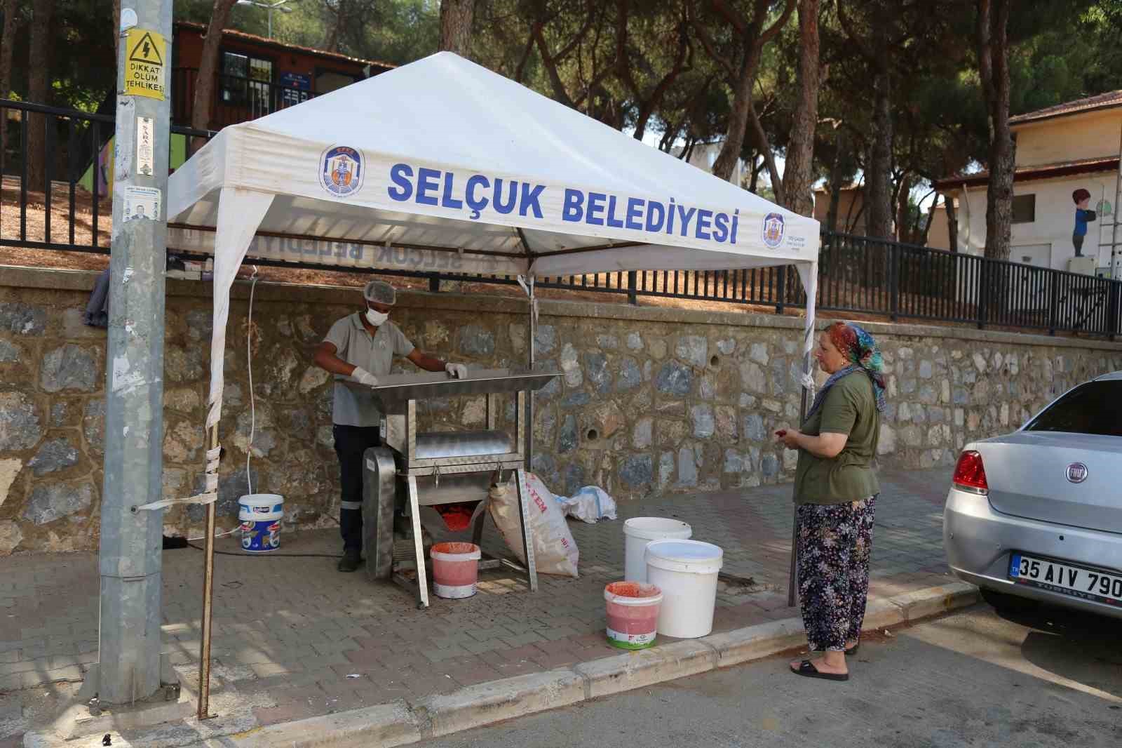 Selçuk Belediyesi, kentte yaşayan kadınların hayatını kolaylaştırmak için bu yaz da salça makinesini kent merkezi ve köylere götürüyor.