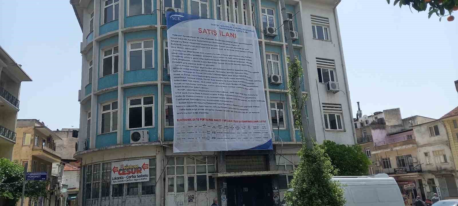 Aydın’da uzun yıllar Sosyal Güvenlik Kurumu (SGK) hizmet binası olarak vatandaşlara hizmet veren tescilli bina 43 milyon TL değer biçilerek satılığa çıkarılırken, ihale şartları da binaya asılan pankart ile kamuoyuna ilan edildi.