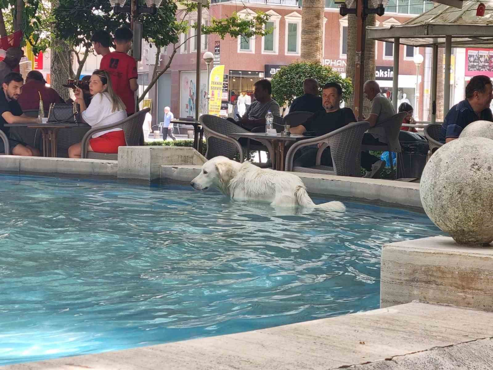 Denizli’de etkisi süren sıcak hava vatandaşları olduğu kadar sokak hayvanlarını da etkiliyor. Sokak hayvanları serinlemek için parklarda bulunan süs havuzlarında serinlemeye tercih etti.