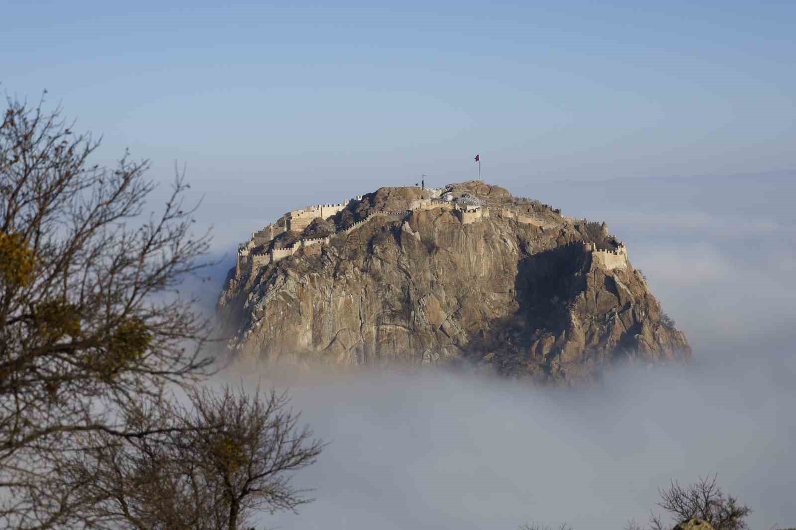 Afyonkarahisar’da yoğun sis Karahisar Kalesi’nde kartpostallık görüntüler oluşturdu.