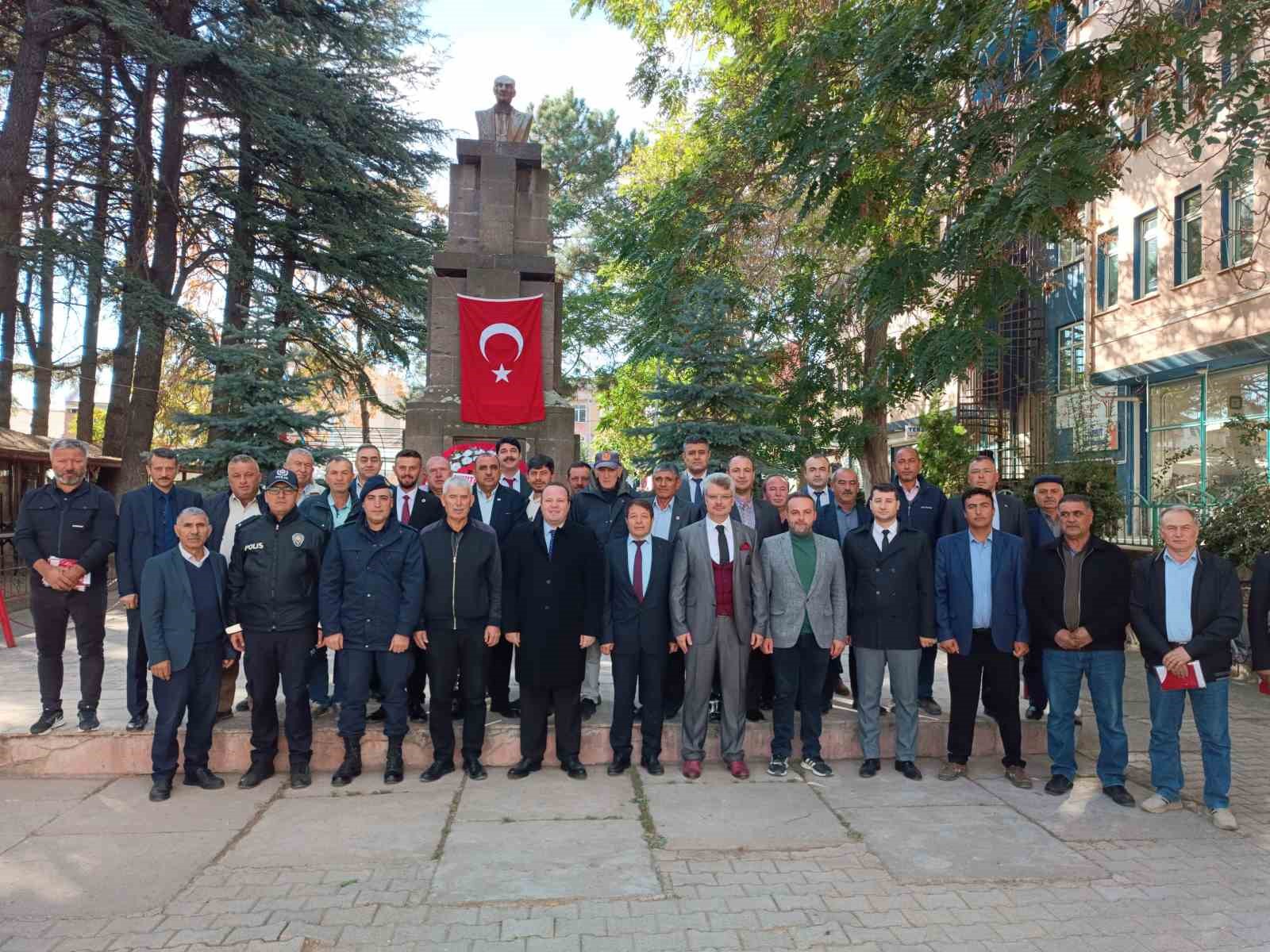 Afyonkarahisar’ın Şuhut ilçesinde 19 Ekim Muhtarlar Günü dolayısıyla tören yapıldı. Atatürk Parkında düzenlenen törende Muhtarlar Derneği Başkanı Fevzi Akar, Ortapınar Köyü Muhtarı İsmail Rahat tarafından çelenk sunumu yapıldı.