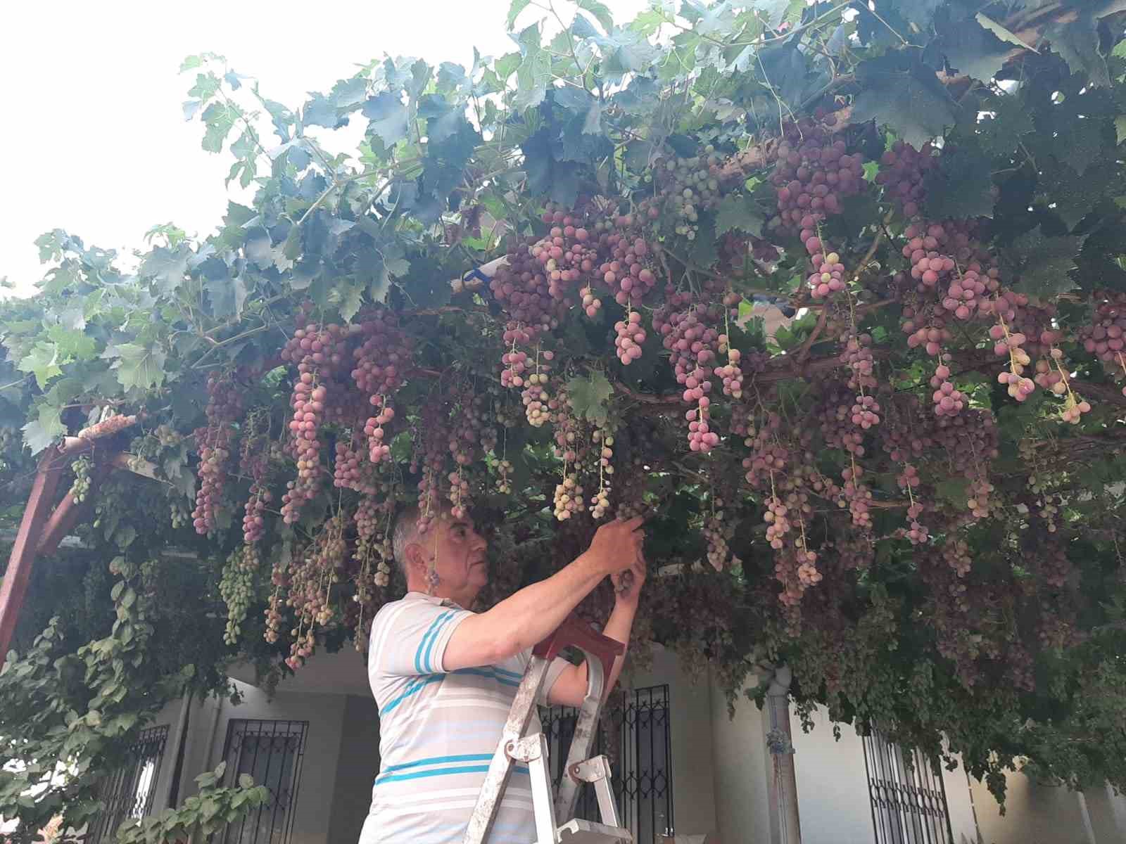 Hem gölgesi oluyor hem de ürünü oluyor. Her yıl haziran ayının 5’i ila 12 arasında üzümü erkenden oluyordu. Bu yıl nedense 20 Mayıs’ta alca çıkardı ve şimdi ise olgunlaştı.” dedi.
