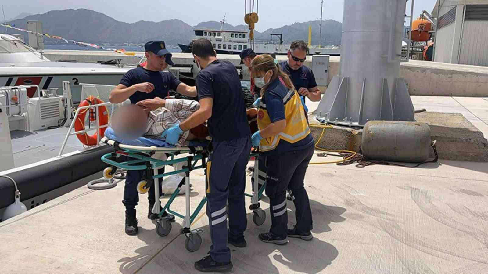 Marmaris açıklarında seyreden özel teknedeki vatandaşın rahatsızlanması üzerine yardım çağrısı yapıldı. Sahil Güvenlik ekipleri yaralanan vatandaşı bota alarak kıyıda bekleyen 112 ambulans ekiplerine teslim edildi.