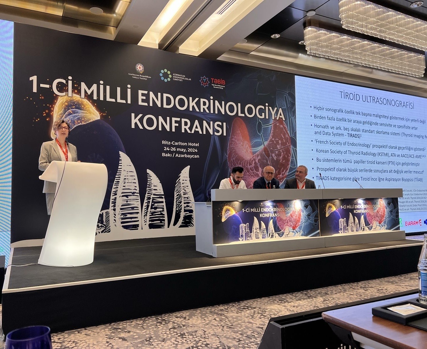Acıbadem Kent Hastanesi Endokrinoloji ve Metabolizma Hastalıkları Uzmanı Prof. Dr. Mehtap Çakır, Azerbaycan Endokrinologlar Cemiyeti’nin davetlisi olarak gittiği Bakü’de, 25 Mayıs Dünya Tiroid Günü’nde “Tiroid Nodülüne Yaklaşım” konusunda sunum yaptı. 24-26 Mayıs 2024 1. Azerbaycan Ulusal Endokrinoloji Kongresi kapsamında gerçekleşen konferansta Prof. Dr. Çakır, tiroid hastalıklarının bütün dünyada endokrinolojide en yaygın görülen problemlerden biri olduğuna dikkat çekti. Son Avrupa Tiroid Birliği kılavuzunda, tiroid nodüllerinin erişkinlerde yüzde 60 oranında bulunduğunun rapor edildiğini kaydeden Prof. Dr. Çakır, konferansında şu noktalara dikkat çekti: