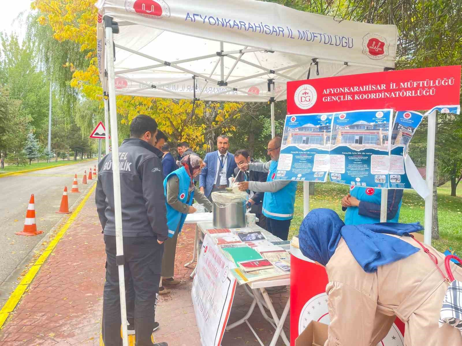 Gençlik Koordinatörleri sorumluları, Merkez ve KYK Yurtlarında, AFSÜ Hastanesinde görev yapan Manevi Danışmanların yer aldığı stantta, öğrencilere çorba ve çeşitli ikramlar dağıtıldı. “Bu şehirde yalnız değilsiniz ” sloganıyla gençlere tanıtım yapıldı. Gençlerin yoğun ilgi gösterdiği Diyanet Gençlik standında, Diyanet Gençlik Merkezinde yapılması planlanan dersler ve faaliyetler tanıtılarak, Diyanet İşleri Başkanlığı yayınları hediye edildi.