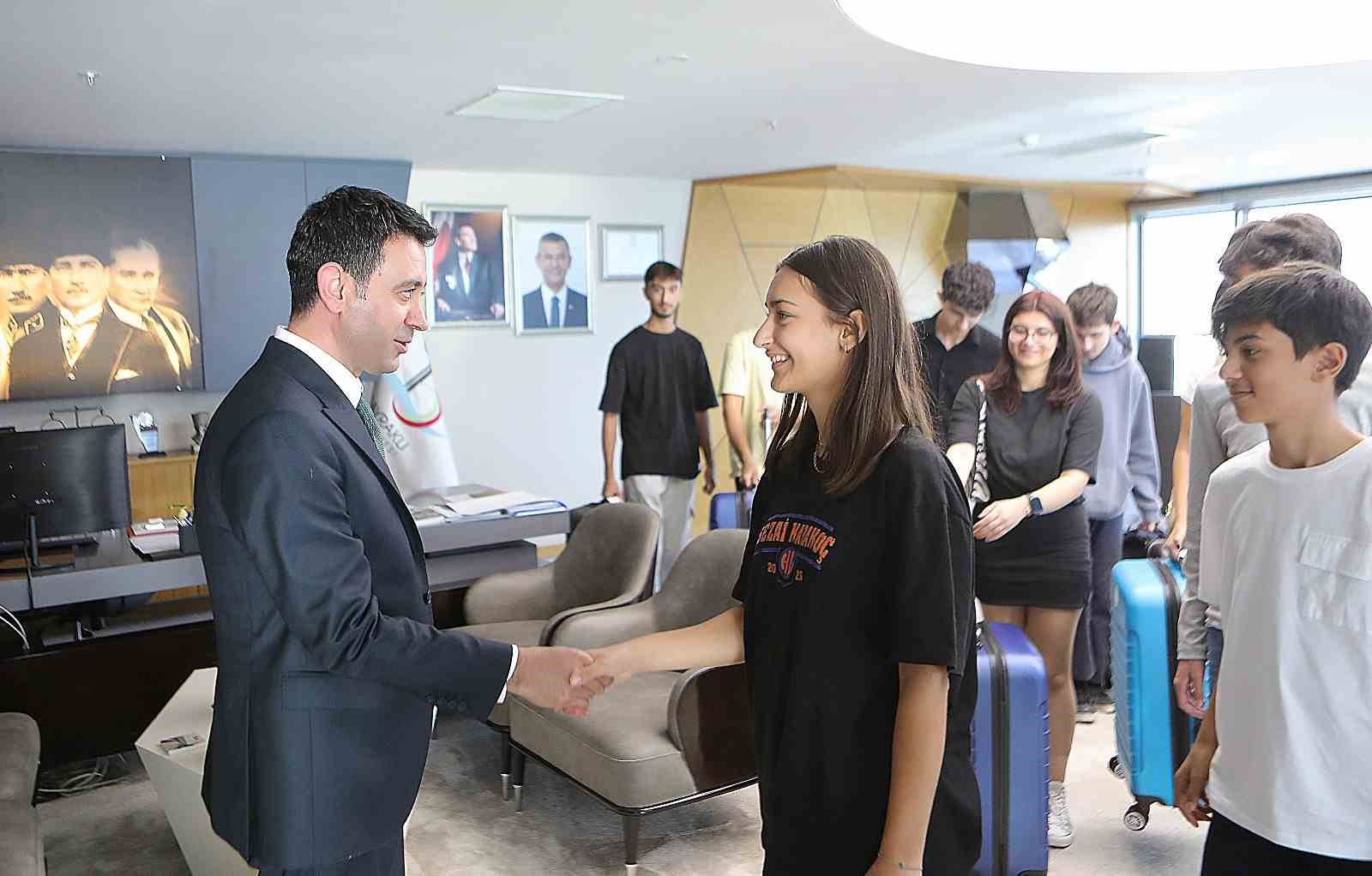 Bayraklı Belediyesi Sosyal Etkinlik Merkezi’nde eğitim alarak üniversite ve liseye giriş sınavlarında başarılı olan öğrenciler, Bayraklı Belediye Başkanı İrfan Önal’ı makamında ziyaret ederek, desteklerinden dolayı teşekkür etti.
