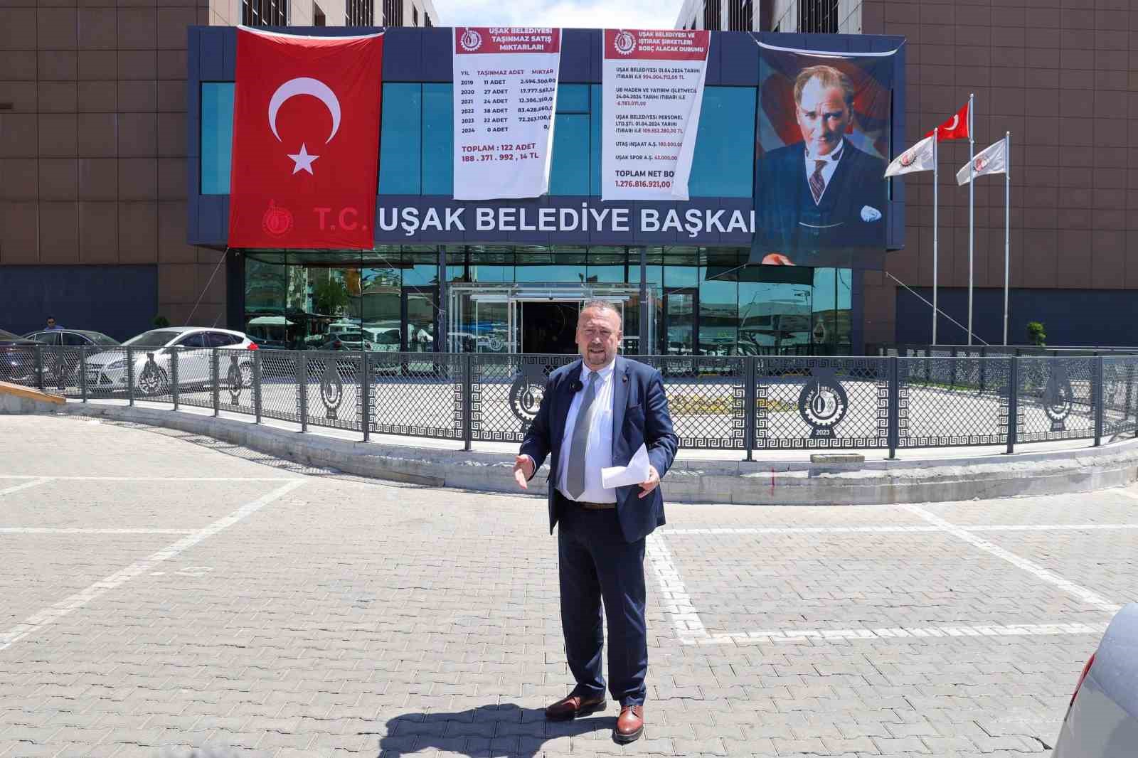 31 Mart yerel seçimlerinde rekor farkla başkanlığı kazanan ve AK Parti yönetiminden koltuğu devralan CHP’li Belediye Başkanı Özkan Yalım; belediye binasına astırdığı afişle Uşak Belediyesi’nin borçlarını açıkladı. Başkan Yalım, “Uşak Belediyesi’nin eski dönemden kalan toplam 1 milyar 276 milyon 816 bin 921 TL borcu bulunuyor. Borçların bir kısmı Uşak Belediyesi’ne aitken bir kısmının belediye iştiraklerine ait olduğu görülüyor” dedi.
