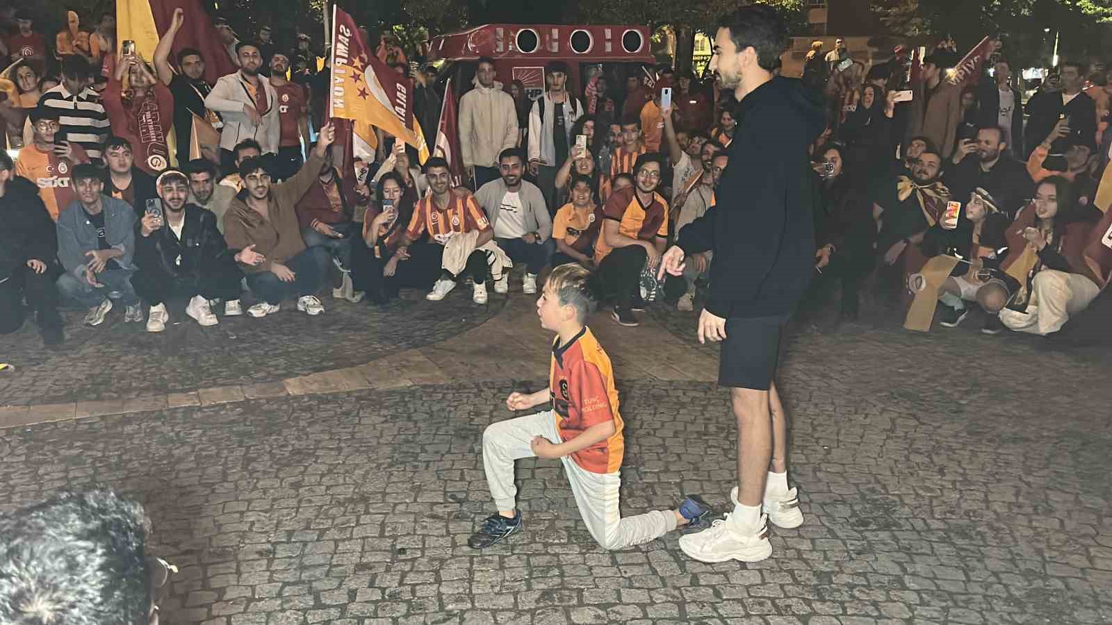 Uşak’ta da kutlamaların adresi 15 Temmuz Şehitler Meydanı olurken, Galatasaraylı taraftarlar bayrak ve meşele eşliğinde şampiyonluğu doyasıya kutladı.