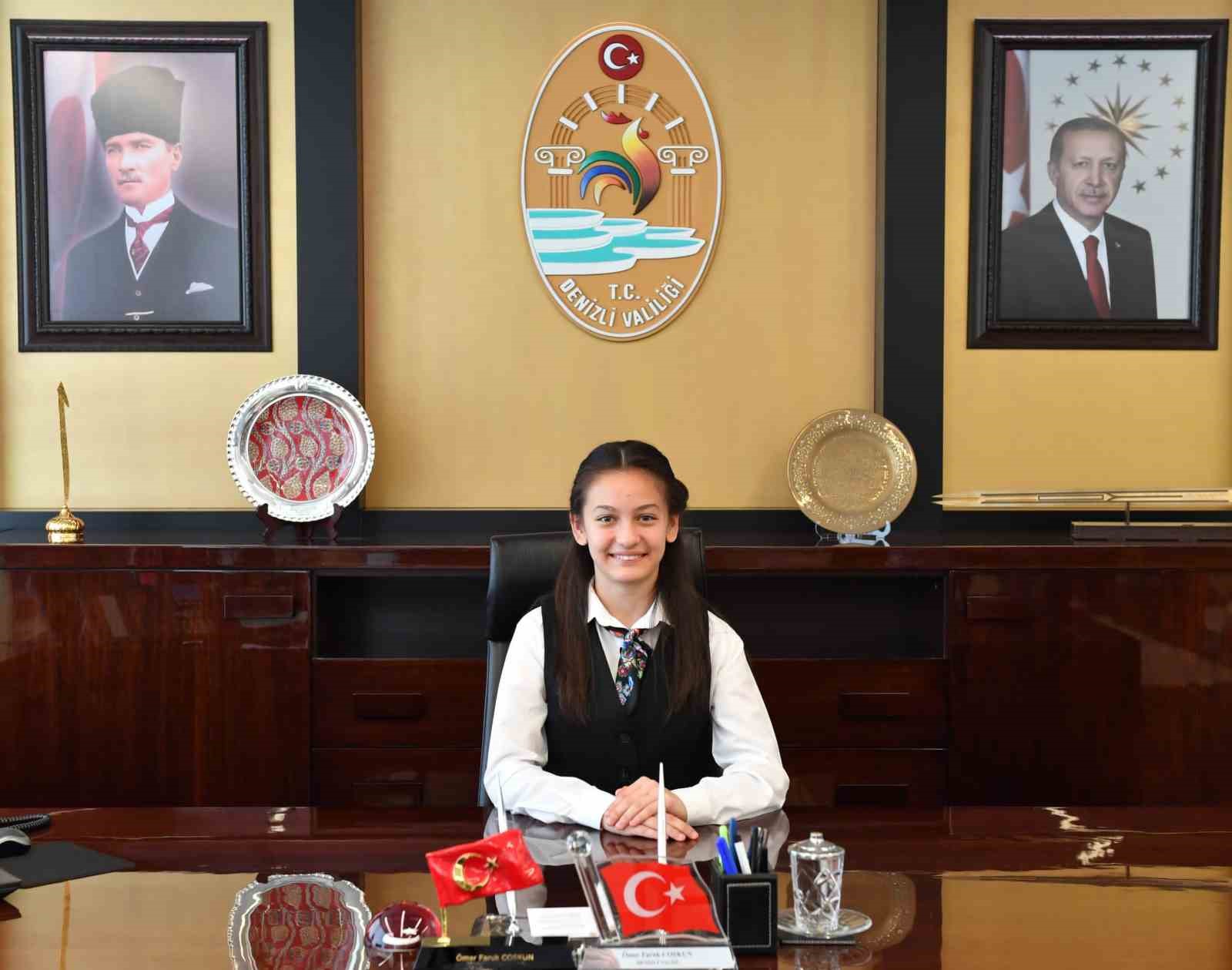 23 Nisan Ulusal Egemenlik ve Çocuk Bayramı etkinlikleri kapsamında Denizli Valisi Ömer Faruk Coşkun makamını 7. sınıf öğrencisi Zeynep Ekin Kalkan’a temsili olarak devretti.