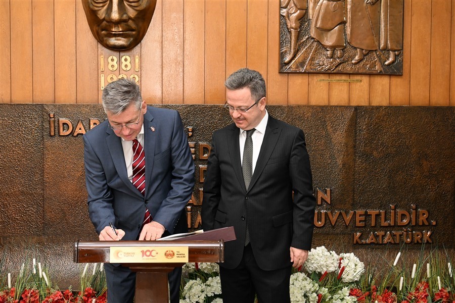 Bir dizi resmi ziyaret programı kapsamında Manisa’ya gelen Almanya İzmir Başkonsolosu Ralf Schröer, Vali Enver Ünlü’ye ziyarette bulundu. Valilik Şeref Defterini imzalayan Başkonsolos Schröer daha sonra Vali Enver Ünlü ile Manisa’daki ticaret, eğitim, kültür konuları ve iki ülke arasındaki kültürel konulara dair bir süre sohbet ederek bilgi alışverişinde bulundu. İki ülke arasındaki dostluğa vurgu yapan Almanya İzmir Başkonsolosu Ralf Schröer, diplomatik ilişkilerin sıcaklığı ve bağların güçlü olmasının önemli olduğuna değinerek misafirperverliğinden dolayı Vali Ünlü’ye teşekkür etti.