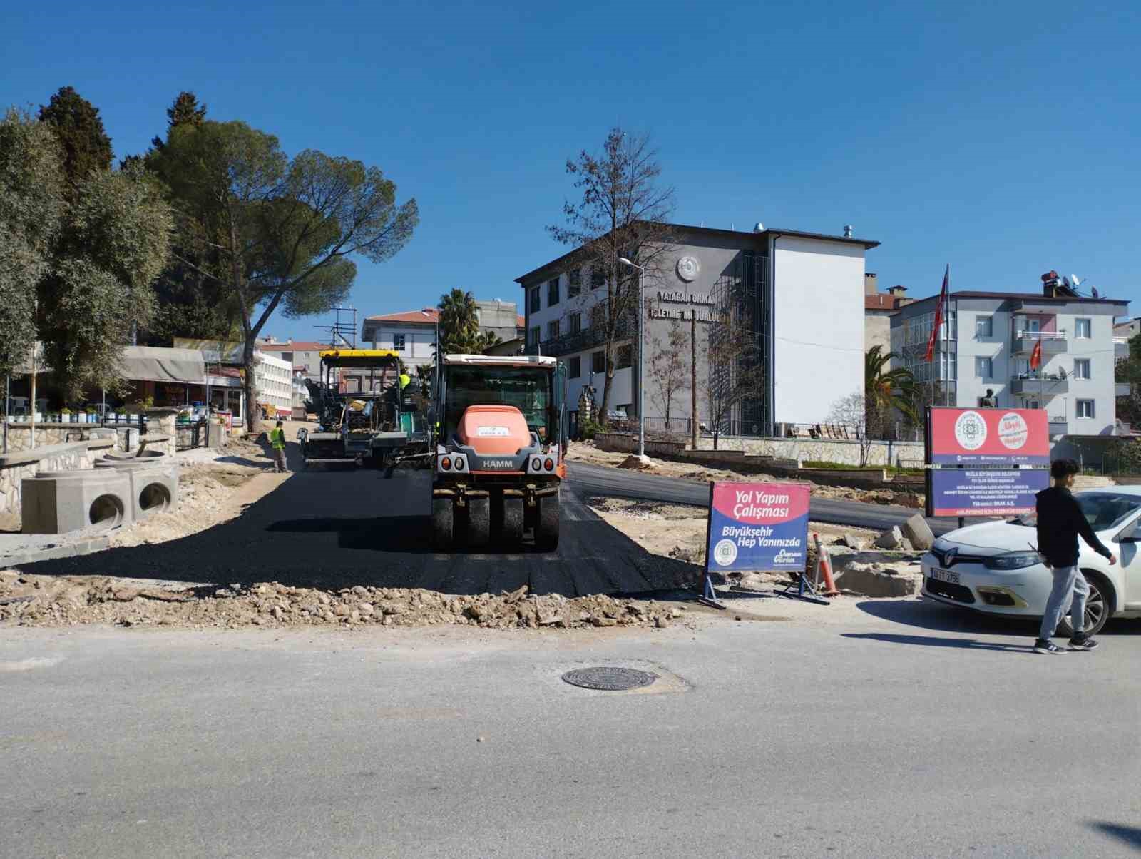 Yatağan Atatürk Caddesi’nde sıcak asfalt çalışmasının birinci katı tamamlandı