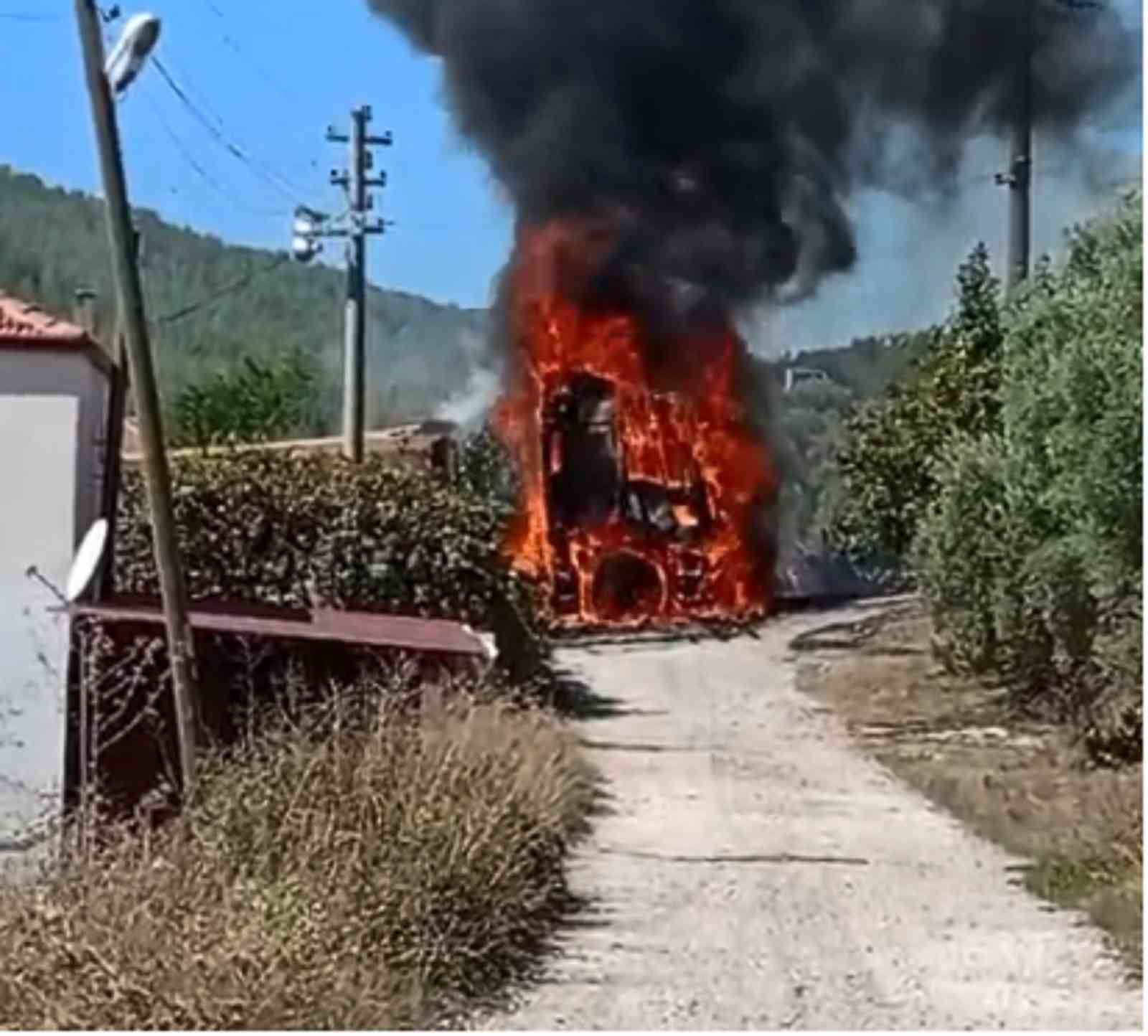 Muğla’nın Yatağan ilçesi Bencik Mahallesi’nde hafriyat yüklü bir kamyon, seyir halindeyken çıkan yangın sonucunda küle döndü. Çevredeki vatandaşların ihbarı üzerine yangına hızlı bir şekilde müdahale edilmesine rağmen, kamyon kullanılamaz hale geldi.