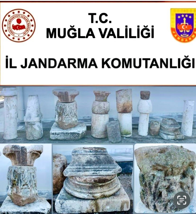 Yapılan aramada şüphelilerin evlerinden 2 bin yıllık olduğu değerlendirilen çeşitli ebatlarda 9 adet sütun, 2 adet sütun başlığı, 5 adet sütun parçası ve 4 adet yalak olmak üzere 20 parça tarihi eser ele geçirildi. Ele geçirilen tarihi eserler Jandarma ekipleri tarafından el koyulurken Yatağan Cumhuriyet Başsavcılığı koordinesinde yürütülen operasyon ile ilgili şahıslara adli işlem başlatıldı.