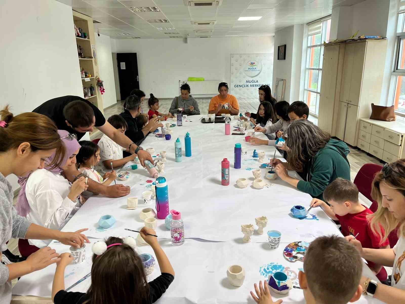 Muğla Gençlik ve Spor İl Müdürlüğü bünyesinde faaliyet gösteren Muğla Uluslararası Gençlik Merkezi, yaz tatili döneminde anne ve çocukları sanat atölyesinde bir araya getirdi. Anne-Çocuk Sanat Atölyesi’nde düzenlenen etkinlikte, anneler ve çocuklar birlikte seramik şekillendirme çalışması gerçekleştirdi.