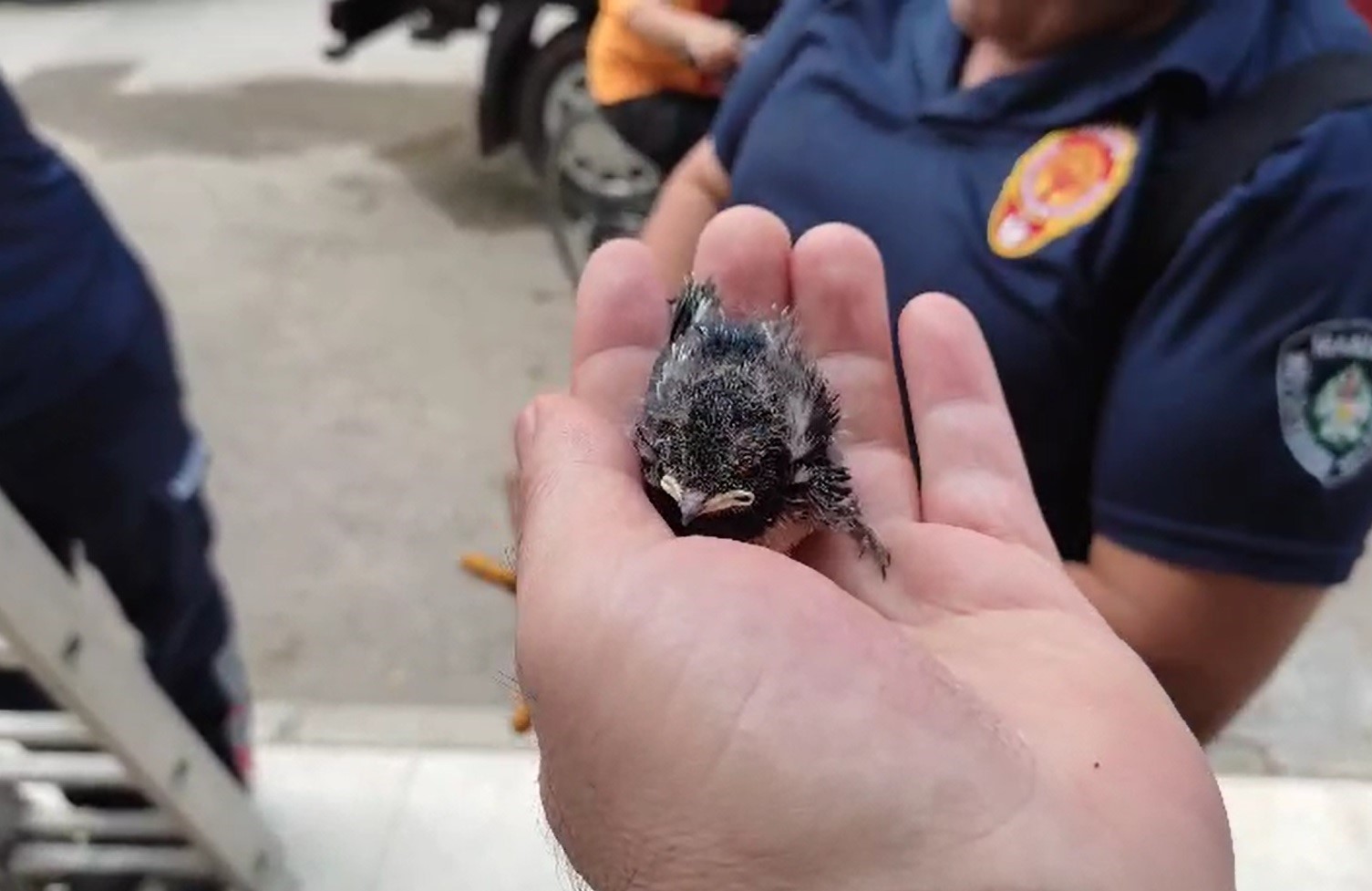 Ana Sayfa GÜNDEM Yuvadan düşen yavru kırlangıcın imdadına itfaiye yetişti